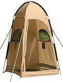 Whether you're camping in wide-open spaces or you just need a little privacy from your fellow beachgoers, this Texsport Hilo Hut privacy shelter is a must. Made of rugged polyurethane-coated taffeta, the Hilo Hut is just like a campsite dressing room, with enough space to change clothes, dry off, or just catch a moment to yourself. The shelter is sturdier than many other privacy shelters, with a pin-and-ring frame system, shock-corded fiberglass poles, and tough stakes and guy ropes that keep it rooted to the ground. And when it gets a bit too hot in the Hilo Hut, you can open the no-see-um mesh windows and vents. Other features include a large zippered D-style door for easy access, a mesh storage pocket, and a carrying bag. Flame retardant to CPAI-84 specifications, the Hilo Hut measures 4 by 4 feet and stands 84 inches tall.